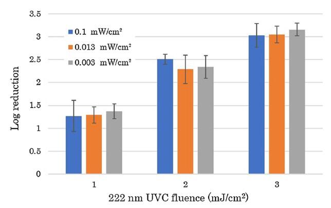 Effet de l'irradiation intermittente et de la réponse de fluence de la lumière ultraviolette de 222 nm sur la contamination par le SARS-CoV-2.