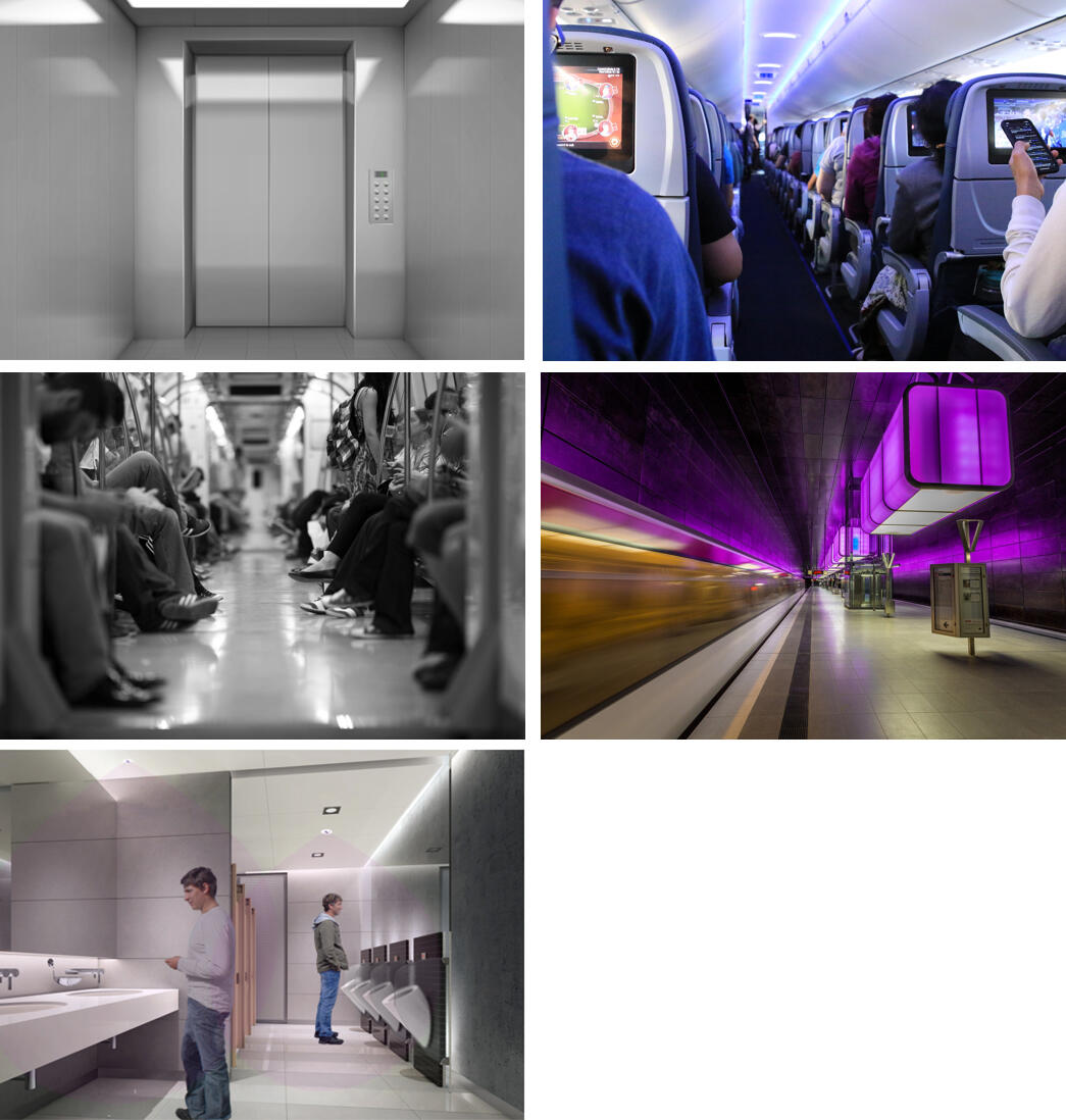 Applicable à Toilettes publiques, ascenseur, cabine d'avion, voiture de transport en commun, quai